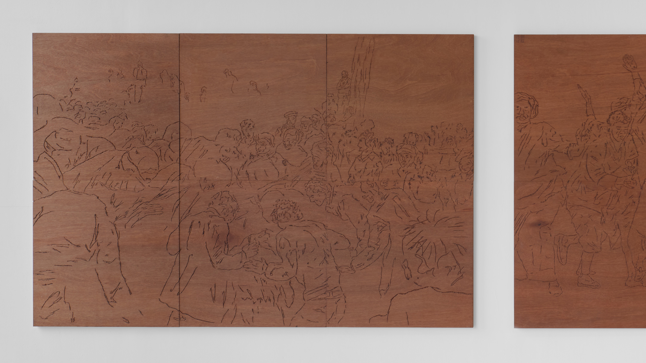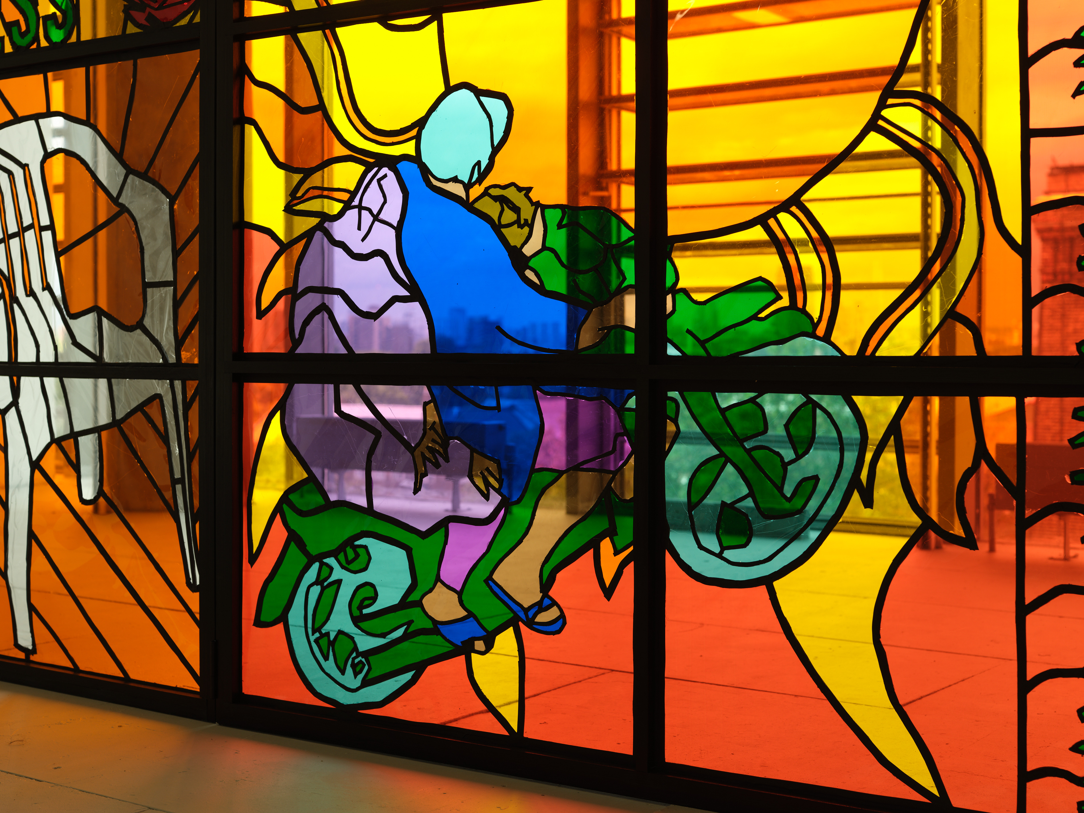 Til LANDING 2026 har Christina König skabt Vandtro som en ny malerisk installation i kirsebærtræ, plexiglas og olie. Det er en undersøgelse af, hvad der kan ske i mødet mellem en ideologikritisk kunsthal, en religiøs institution og det alternative, hvis vi går til hinanden med et åbent sind.