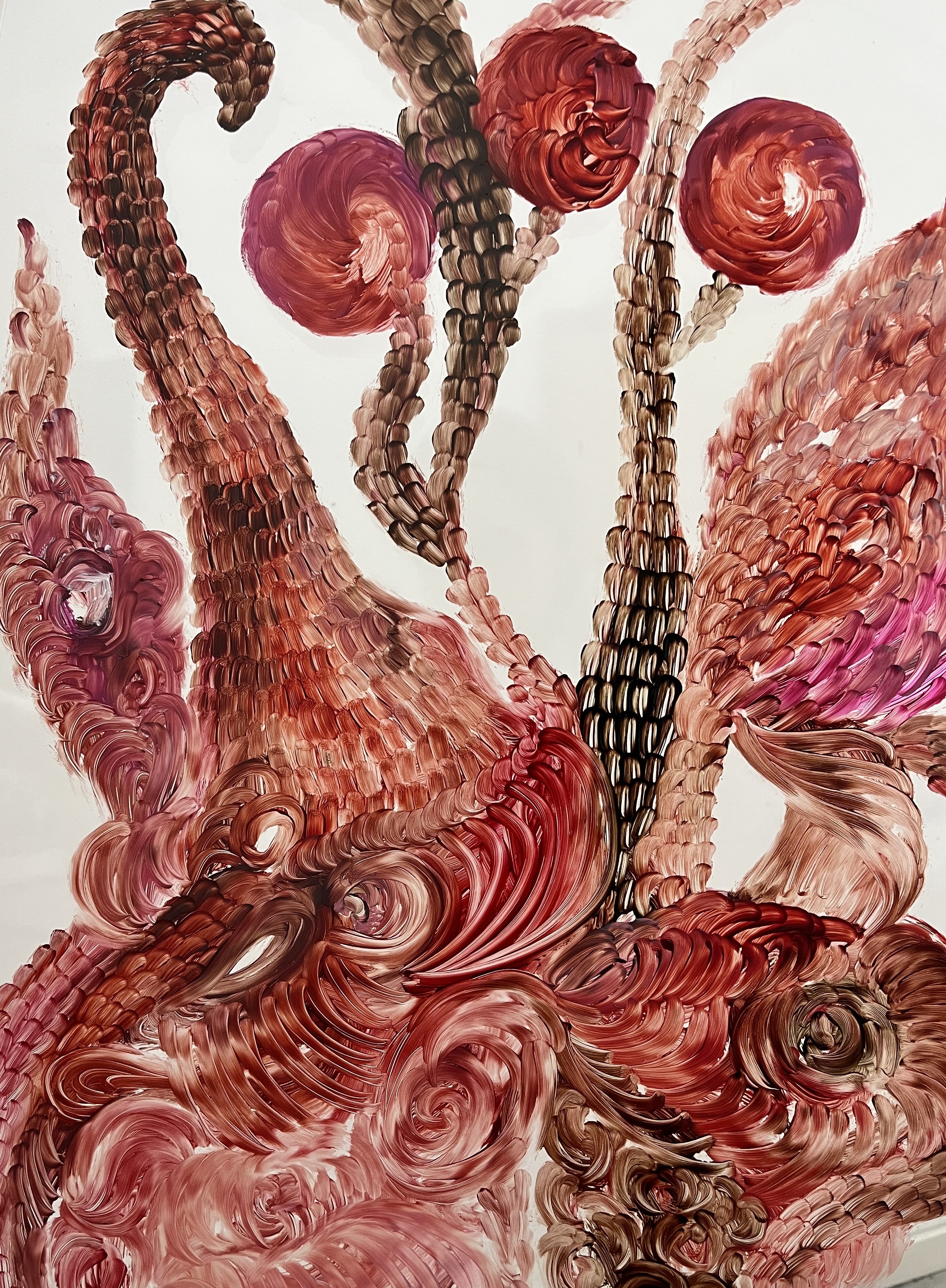 06 Christina König, nærfoto af maleri i proces, 2025. Foto: Christina König